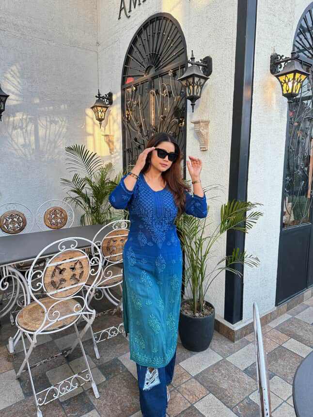 Hand Embroided Dobby Cotton Ombre Chikankari Kurti