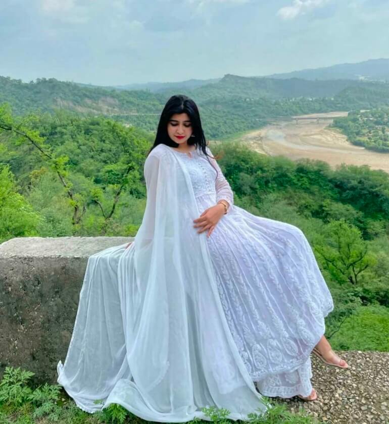 Lucknowi Chikankari Premium Sheer Viscose Fabric embellished with Mukaish work Kurti