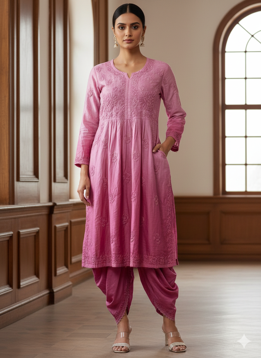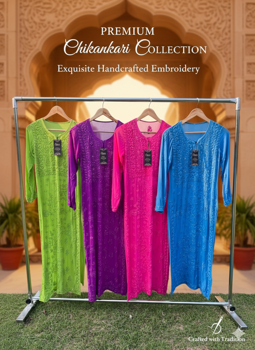 Premium Viscose Fabric HandWork Chikankari Kurti – Ombre Shades ( 46 inch Length)