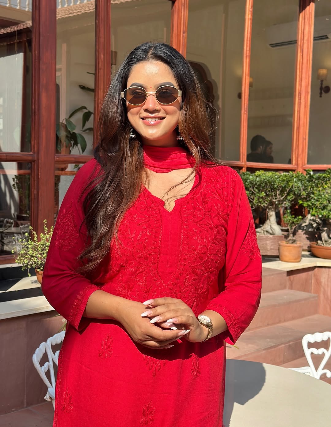 Lucknowi Chikankari Premium Sheer Viscose Fabric embellished with Mukaish work Kurti