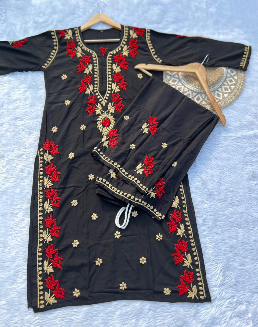 Hemlata Rayon Fabric Hand Crafted Chikanakri Kurti Palazzo Set