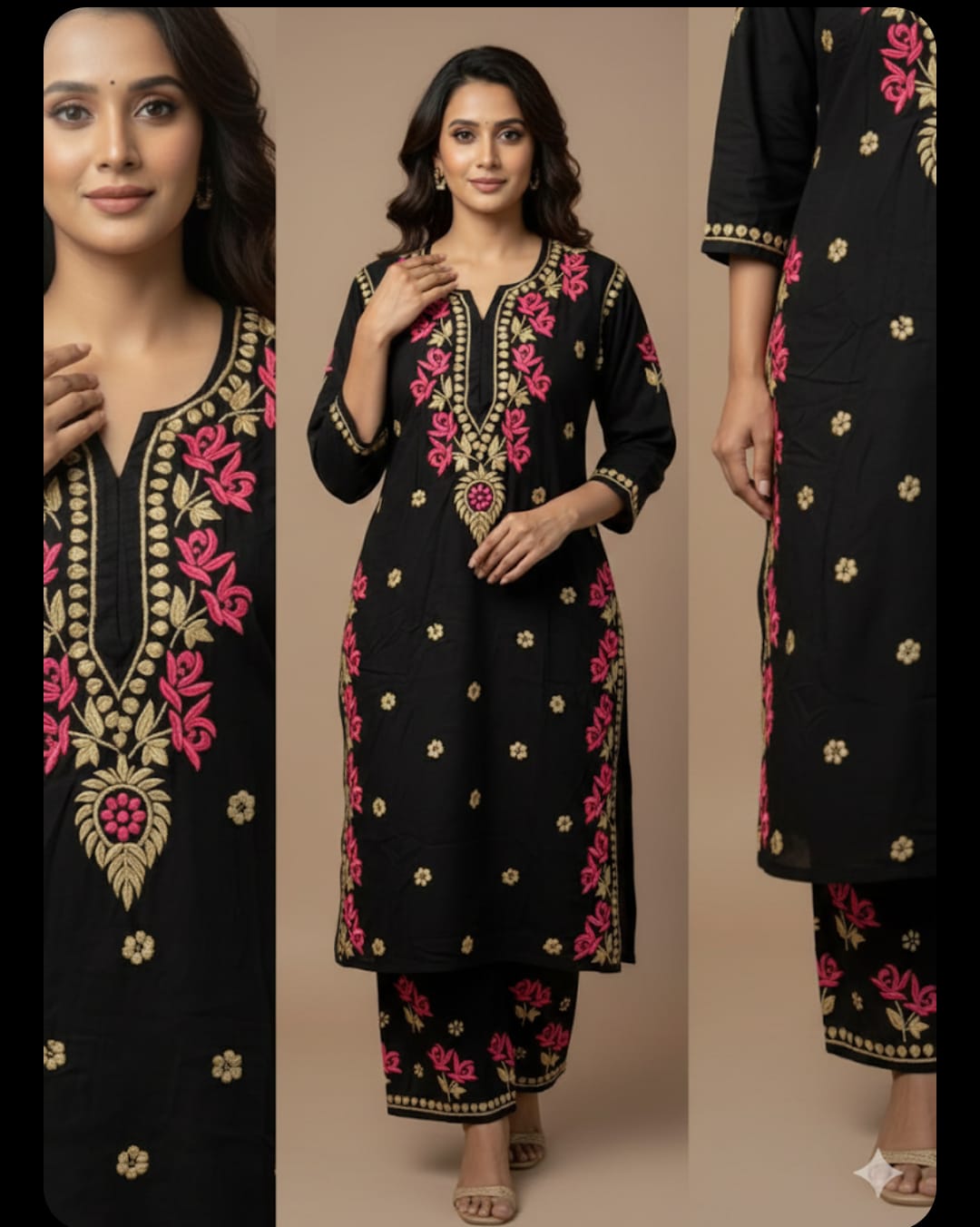 Premium Rayon Fabric Handwork Kurti Palazzo Set