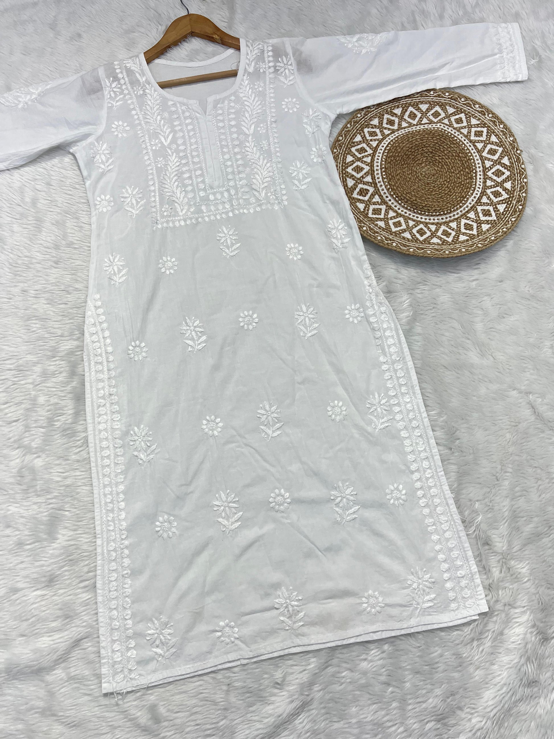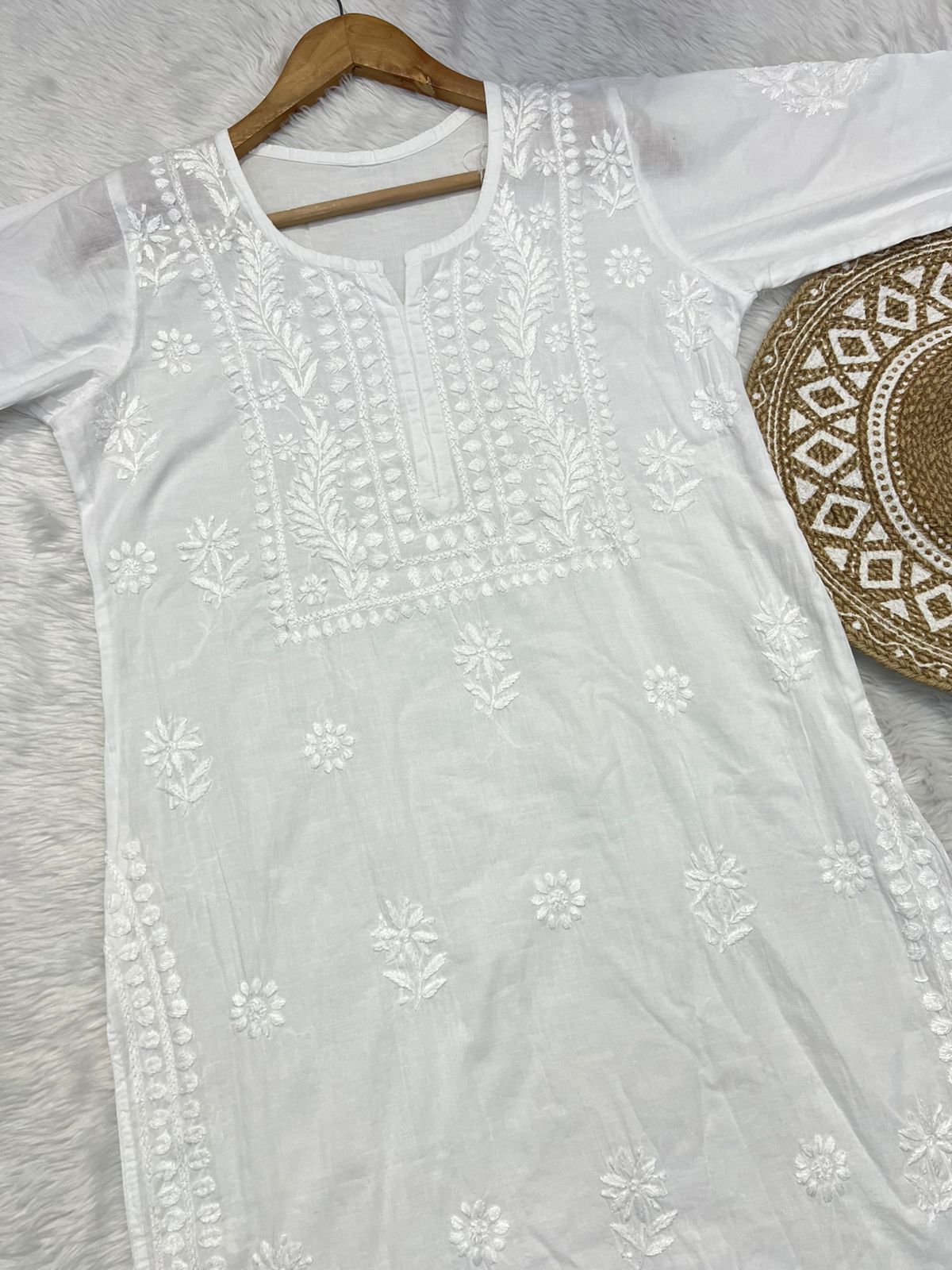 Step into timeless elegance with this Cambric Cotton Chikankari Handwork Kurti, crafted with delicate hand embroidery that reflects the beauty of traditional craftsmanship. Made from soft and breathable cambric cotton, this kurti ensures all-day comfort while keeping your style effortlessly graceful. Perfect for casual outings, festive gatherings, or everyday wear, it pairs beautifully with palazzos, pants, or churidars.