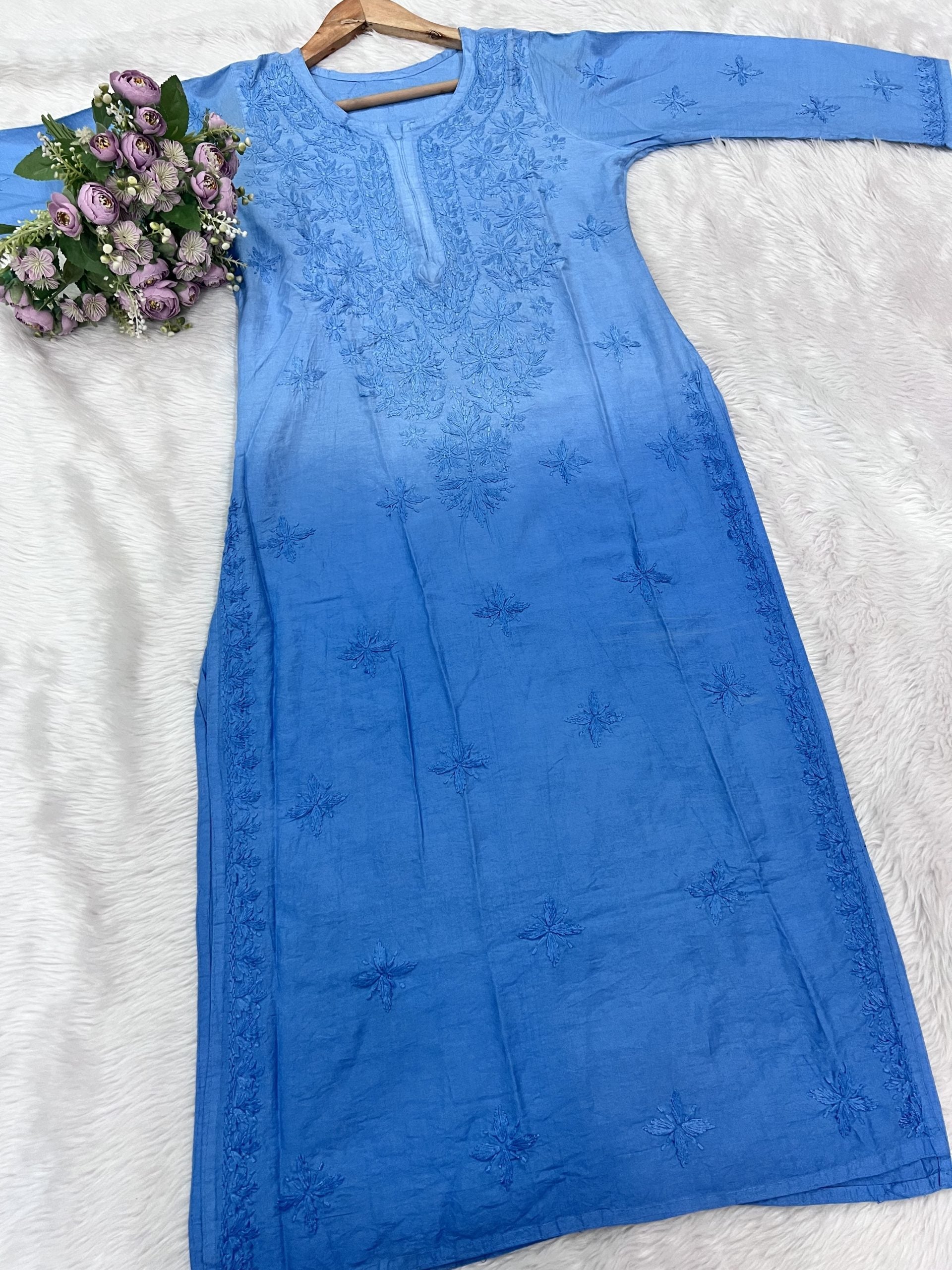 Chikankari Handwork Ombre Shades Chanderi Fabric Kurti with Slip