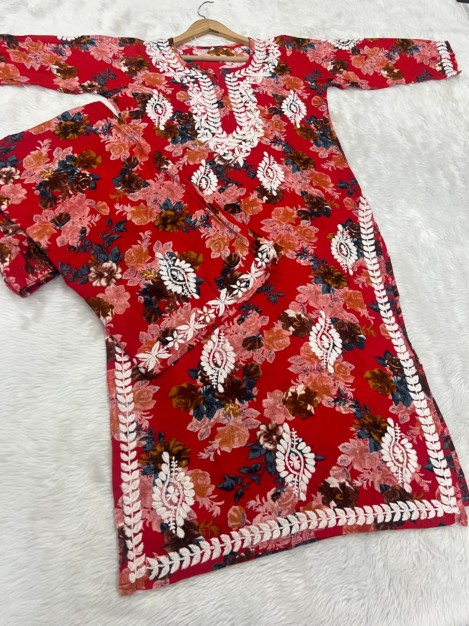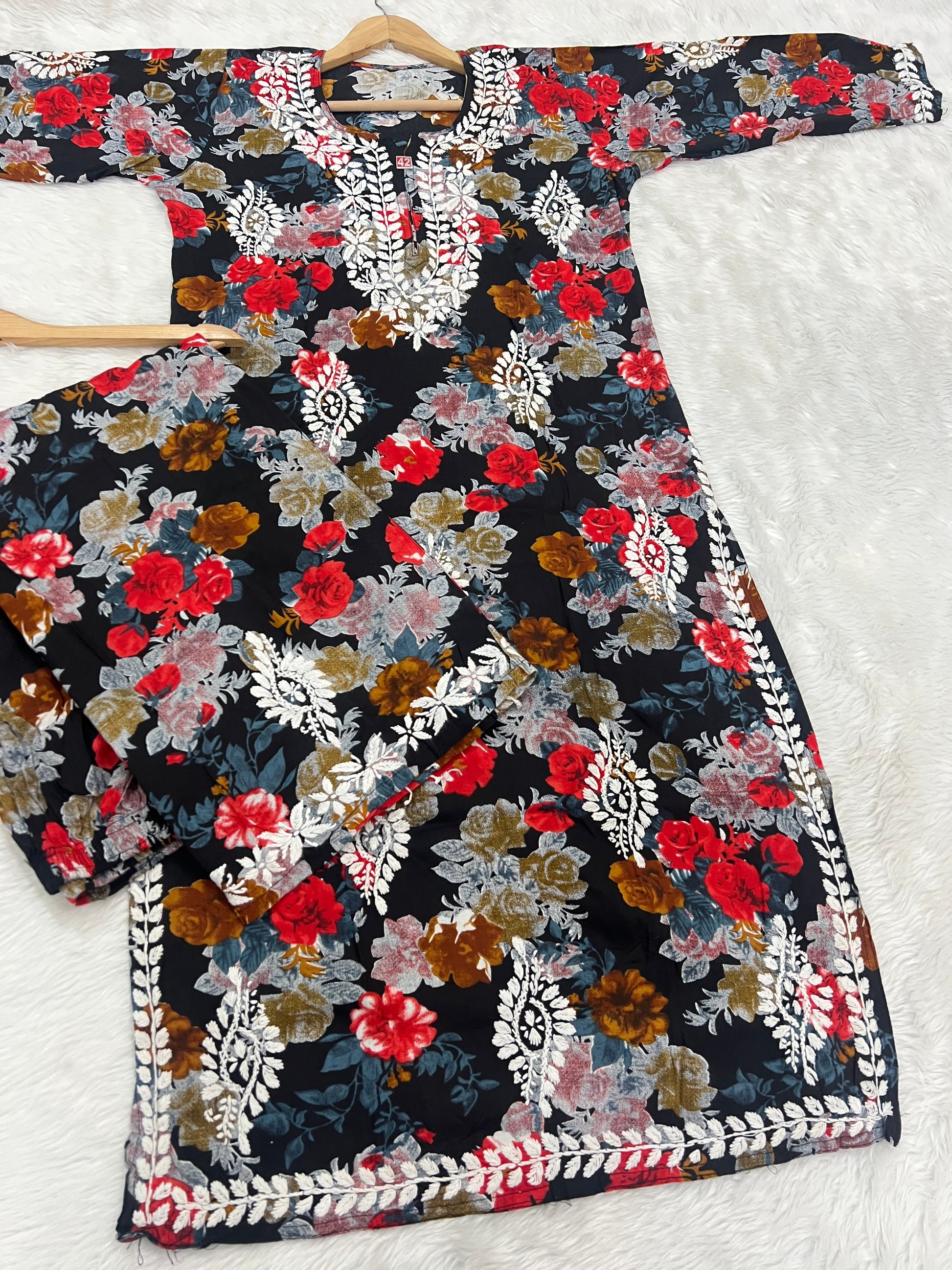 Printed Rayon Fabric Handwork Lucknowi Chikankari Kurti Palazo Set