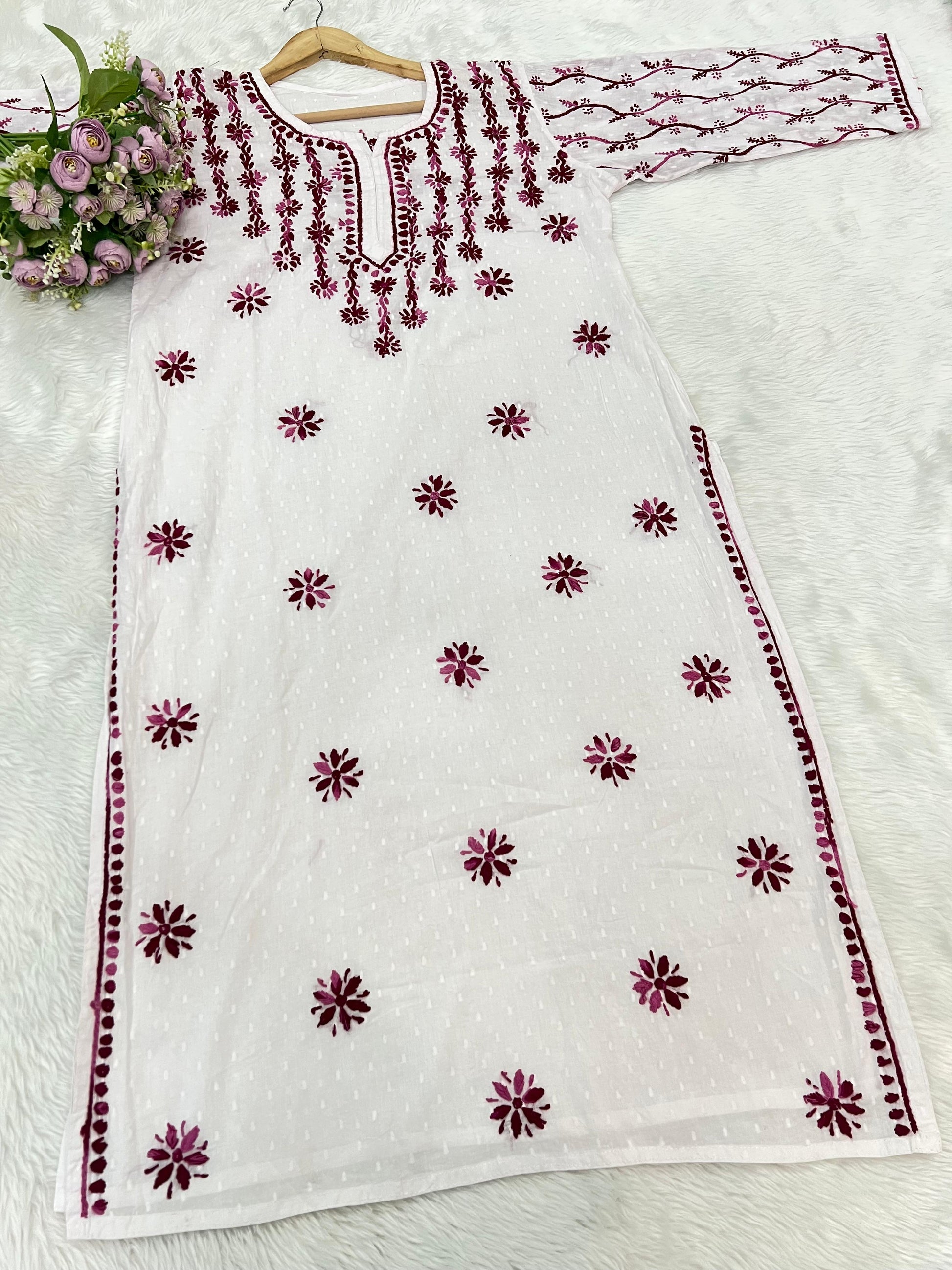Dobby cotton Handwork Heavy Jaal Sleeves Work Kurti