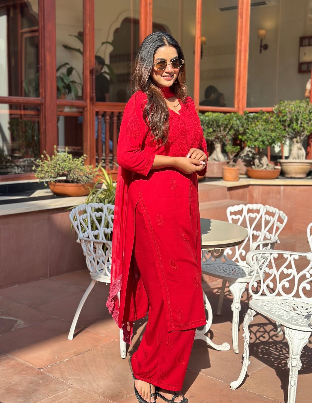 Hand Crafted Chikanakri Soft Rayon Fabric Kurti Palazo & Dupatta Sets