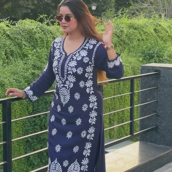 Hemlata Rayon Fabric Hand Crafted Chikanakri Kurti Palazzo Set
