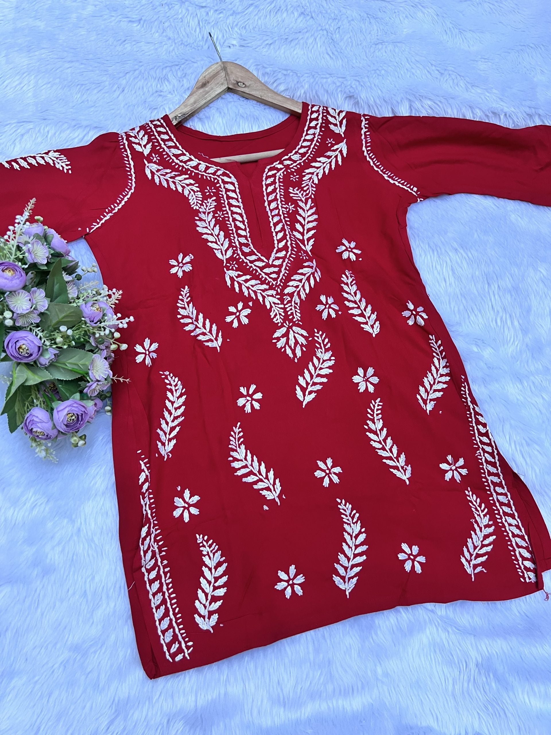 Hand wash separately with mild detergent to preserve the delicate chikankari embroidery.