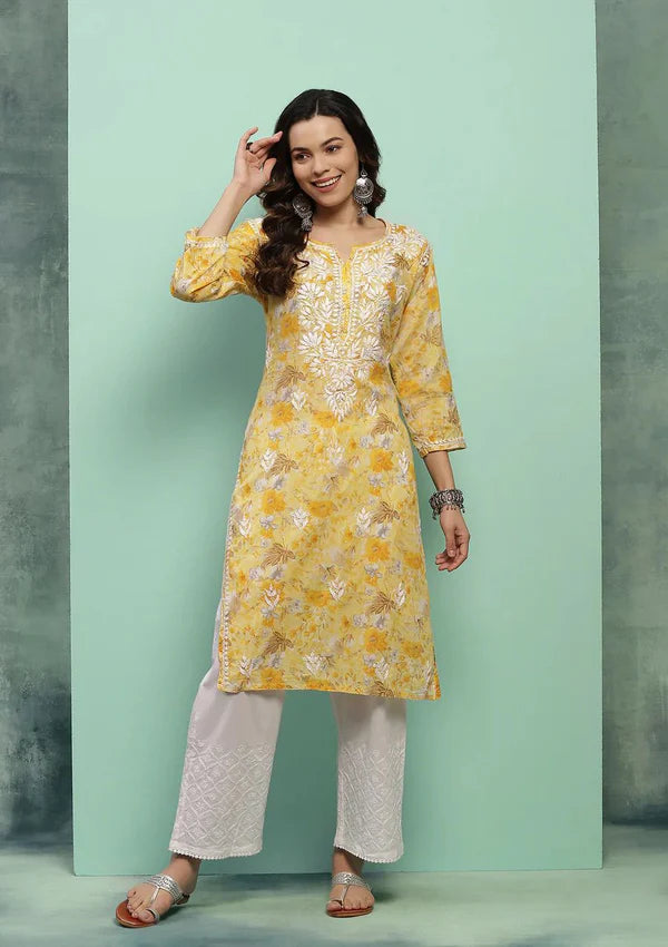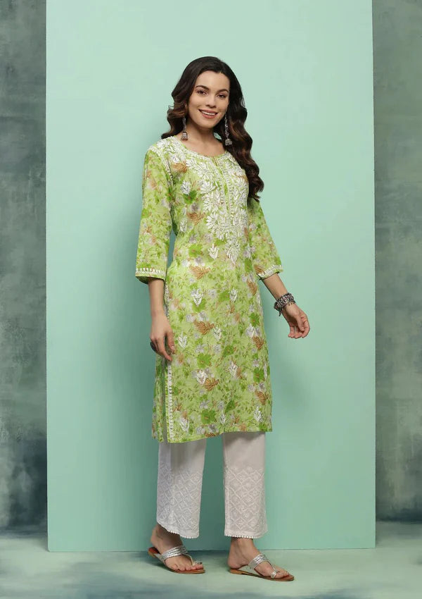 This Mul Mul Cotton Printed Lucknowi Handwork Kurti is a perfect blend of comfort and style. Crafted from soft, breathable mul mul cotton, it ensures all-day comfort while keeping you cool. The intricate handwork detailing on the neckline and sleeves adds a touch of elegance, making it ideal for casual outings or festive occasions. The delicate printed patterns further enhance its charm, giving it a timeless, versatile appeal. Whether paired with jeans, leggings, or a traditional bottom, this kurti is a must-have addition to your wardrobe.