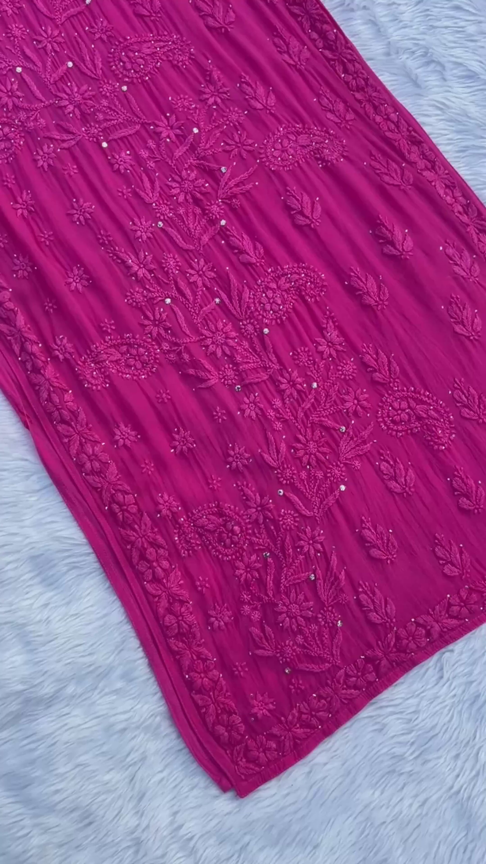 Hand wash separately with mild detergent to preserve the delicate chikankari embroidery.
